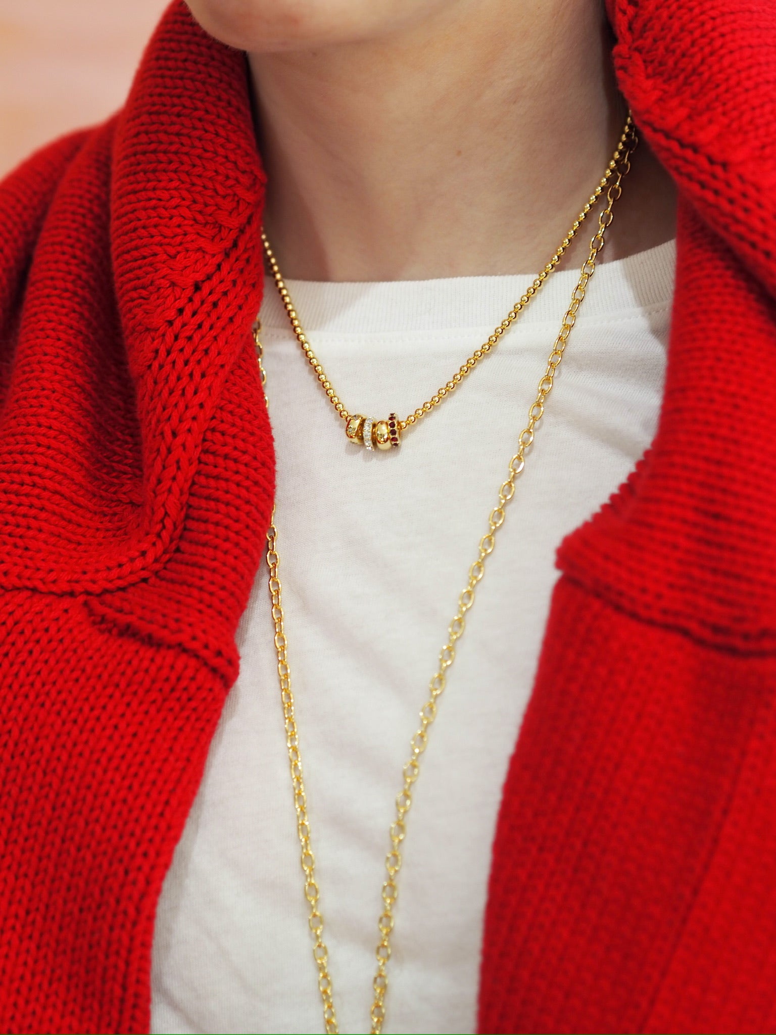 A new way to space out your charms and add in some color. Slide these right on your existing Thick Cable Chains, Beaded Ball Chains, and Rhett Collar!