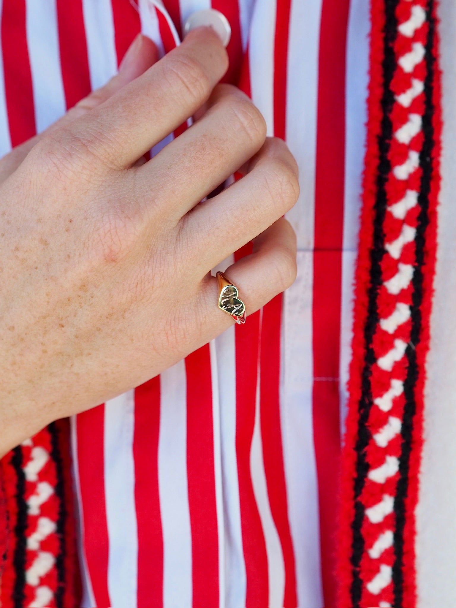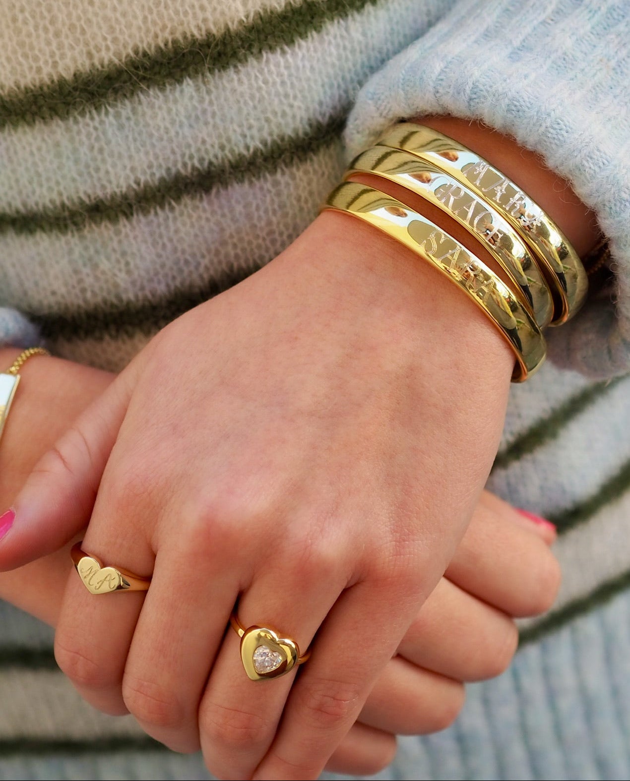 Engraver will use best judgment on lining up the lettering! 18k gold plated brass, sizes 3-8 - Have a question on engraving? Email us at info@goldbugcollection.com