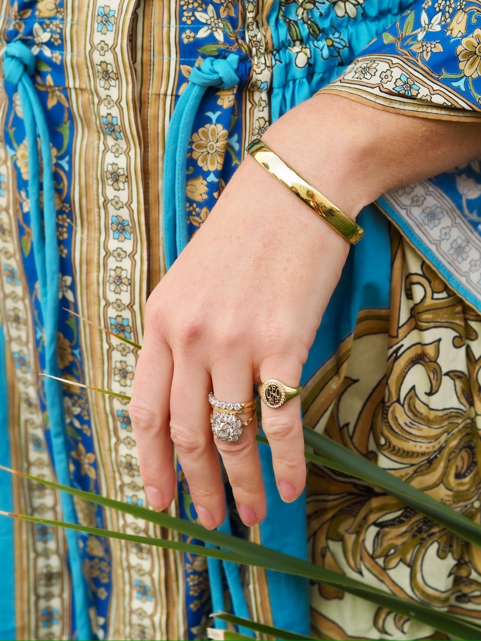 Engraver will use best judgment on lining up the lettering! 18k gold plated brass, CZ crystals, sizes 3-8