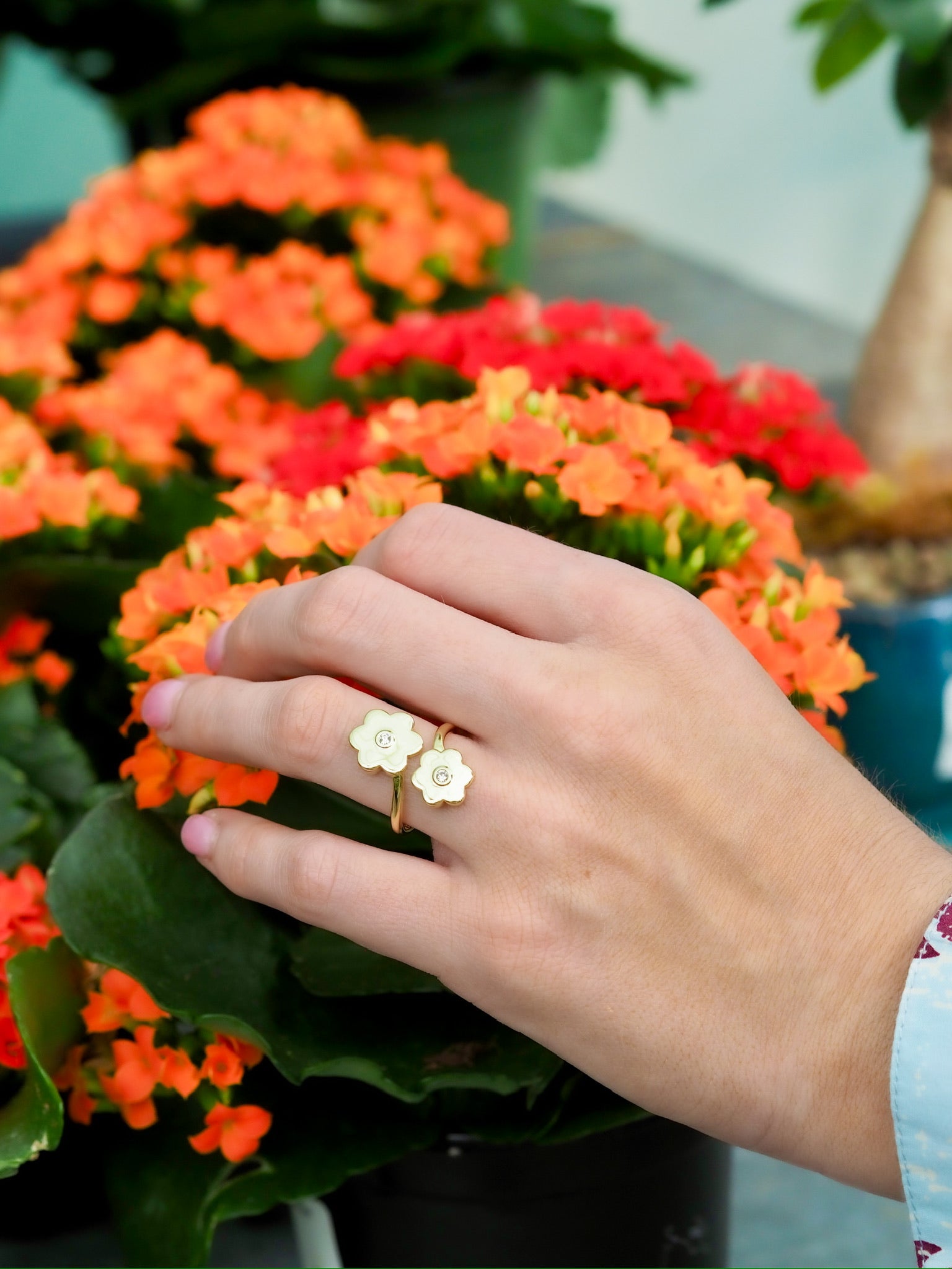 The Double Daisy Ring is pure feel-good and plays well with our new Daisy Chain Bracelet!