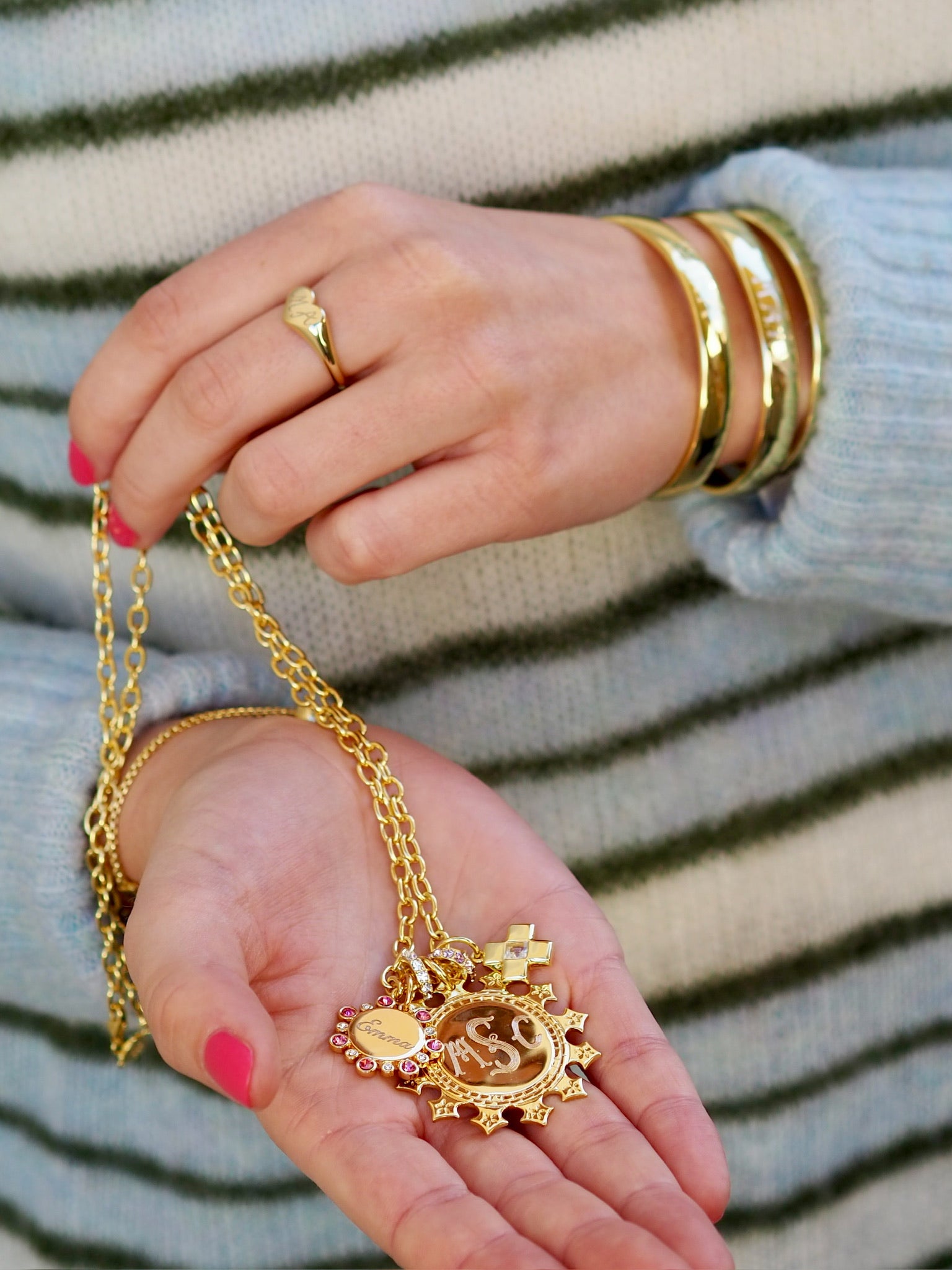 Thicker cable chain with lobster clasp. 18k Gold-plated brass.